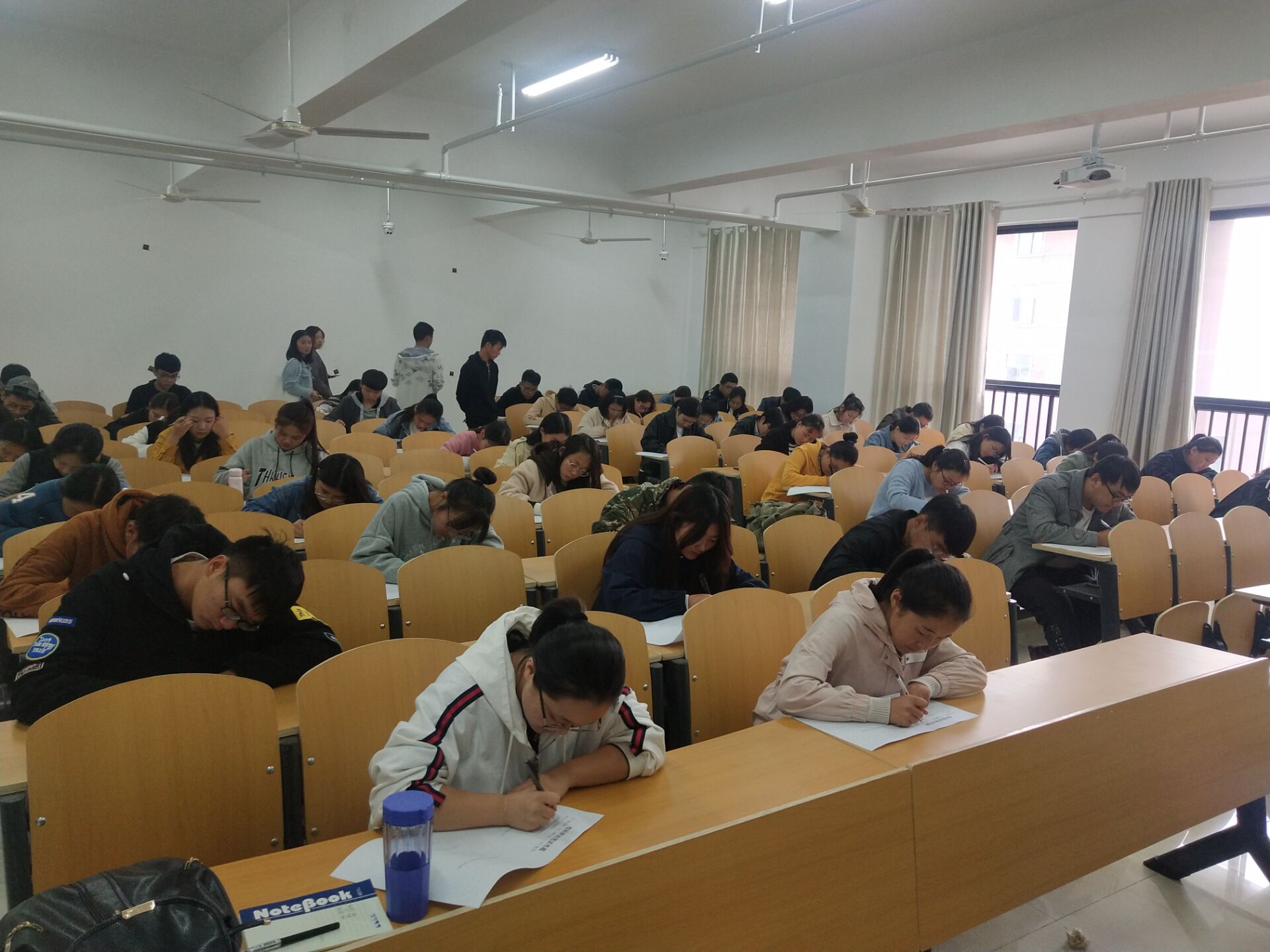 第二轮笔试安排在10月19日中午。教室里,参选新生牺牲午休时间,按时到场,积极参与。考场内,同学们积极思考,奋笔疾书,如同在高考战场上的挥汗如雨。凝重的空气中,只听到阵阵笔与纸摩擦的声音。